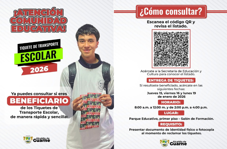 “Hay una gran apuesta por parte de la Gobernaci贸n de Antioquia para garantizar el PAE, que inicia hoy, el primer d铆a del calendario escolar. Ning煤n ni帽o o adolescente debe estar en su hogar; por el contrario, con el apoyo de sus padres, debe estar vinculado al sistema educativo departamental”, se帽al贸 Castro, reiterando la invitaci贸n a las familias rezagadas.